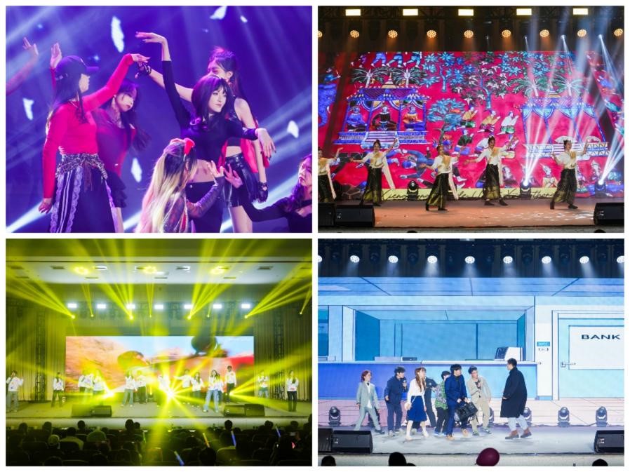 《One Spark》开场便点燃了全场的热情,观众们用火热的掌声迎接《悟空》的盛大登场,中外串烧歌曲的旋律紧密交织,伴随着《Whiplash》与《库什特杰普季》的青春律动,构成了多元歌舞交相辉映的初篇;《十送红军》的民乐合奏沉淀着历史的厚重,《遗产之城的芬芳》连同《Dance Vibes》舞动着异域的风情,共同吟咏着各国诗歌般的岁月过往,在回望往昔的同时启航新程;话剧《好心的劫匪先生》引得全场笑声不断,《中国话》联结着华夏千年文化与万里河山,伴随《This is me》的奇幻之旅,引领观众走向新的篇章,闪耀全新的旅途。