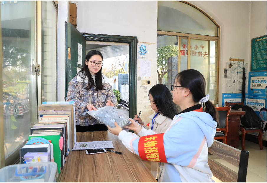 失物招领窗主要负责收取及发放校园内失物,线下设有失物招领点,线上搭建信息平台,借助新媒体平台等渠道发布失物寻物信息,并与各学院建立联系,进行登记认领工作。此外还提供爱心伞的借用,为风雨中的同学送上及时的温暖。失物招领窗年均收取校园卡、身份证、贵重物品等失物6000余件,发放率3000余件,为老师同学的财产保驾护航。