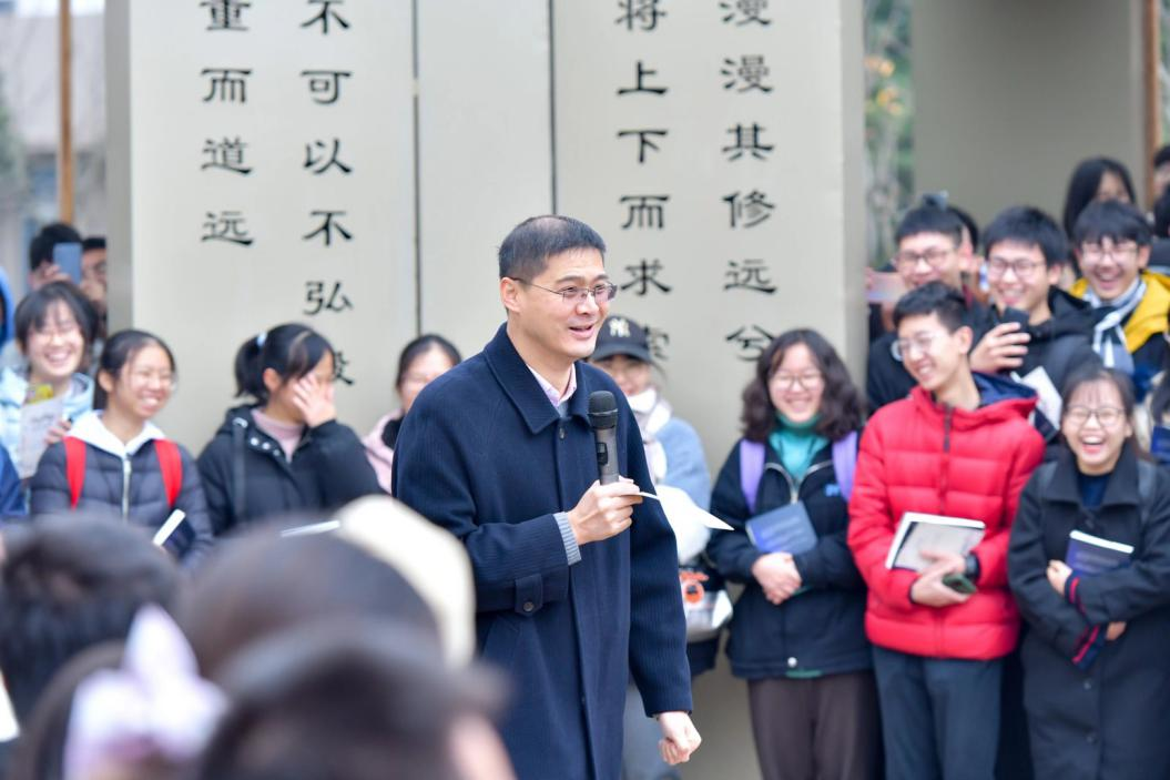 紧邻学生生活园区,精心打造晨读长廊学习场所,取名“问渠长廊”,来源于朱熹的《观书有感》:问渠哪得清如许,为有源头活水来。整个园区占地面积约1万余平米,建有七组共22个廊亭,依次镂空镌刻上了各个朝代的名诗名句。长廊精心设计,巧妙布局,将现代建筑与自然景观相结合,打造优美的晨读环境,营造浓厚的文化育人氛围。
